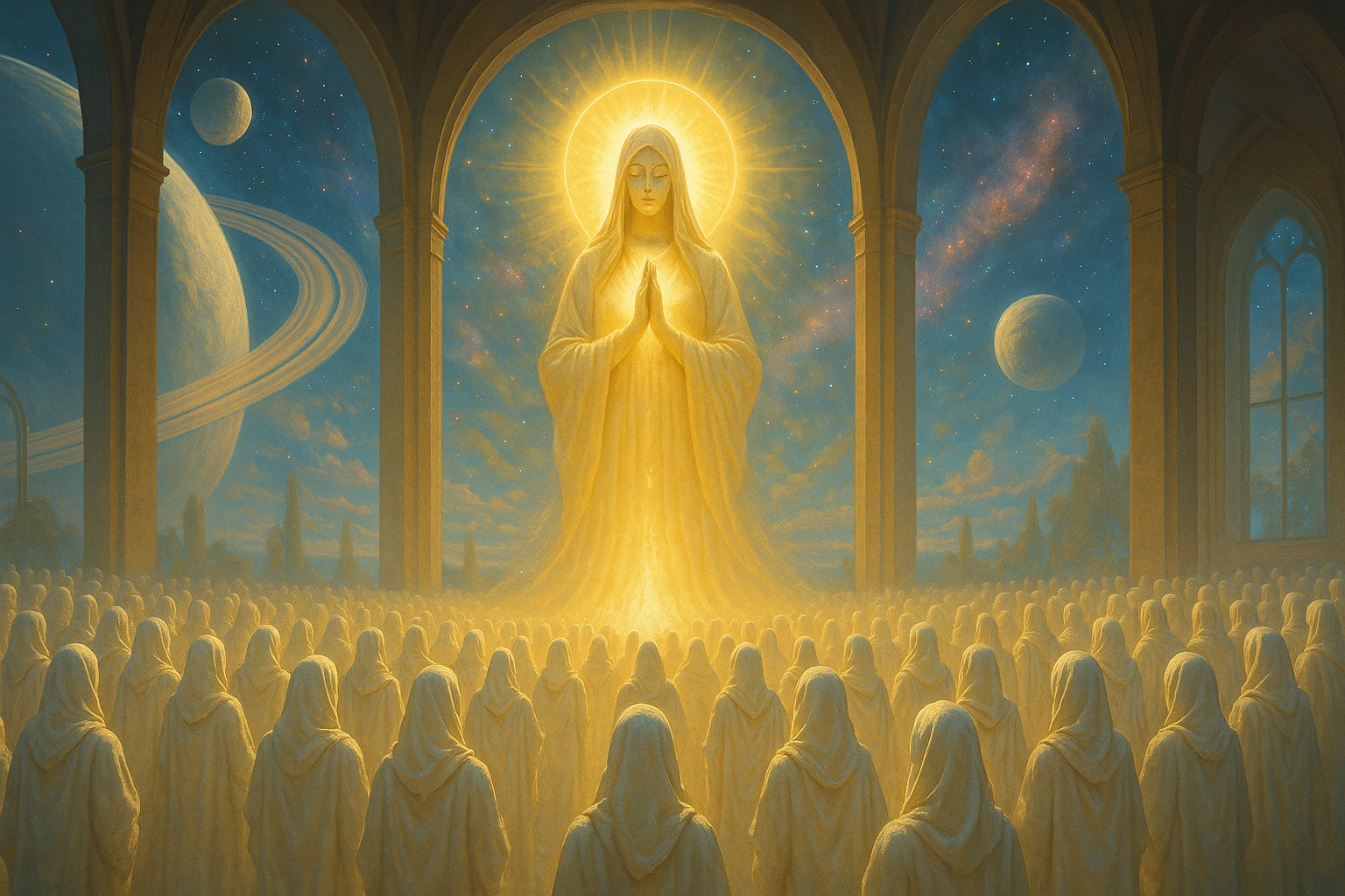 Культ Світлової МатеріУ кожної галактики є свої тіні, та є й свої джерела світла. Десь між руїнами загублених цивілізацій, у пилу розвалених станцій і в знову народжених зоряних містах народжується нова віра – тендітна, як промінь першого ранку, і небезпечна, як вибух наднової. Саме так, із шепоту фотонів і легенд про прадавні зорі, постає Культ Світлової Матері. Пролог: коли світло набуває рис обличчяСпершу це були лише казки космічних мандрівників. Десь на околицях спіральних рукавів, у тавернах на орбітах газових гігантів, пілоти шепотіли одне одному про дивні каравани кораблів без позивних, що рухаються суворо вздовж межі хмар міжзоряного пилу. Вони не користуються маяками, не відповідають на виклики і проходять крізь шторм плазми так, ніби їх веде чиясь невидима рука. Ці каравани належали тим, хто називає себе Дітьми Світлової Матері. Вони не вірять у богів з плоті чи металу. Їхня богиня — сама структура світла, «прамережа фотонів», як кажуть їхні тексти. Вони поклоняються не статуям і не ідолам, а безперервному току сяйва, що, на їхню думку, з’єднує око кожної істоти з серцем Всесвіту. Для зовнішнього світу це – черговий дивний космічний культ. Але як тільки ти заходиш на їхній корабель або станцію, розумієш: тут віра стала архітектурою, ритуал — навігацією, а світло — мовою. Міф про народження Світлової МатеріЗа вченням культу, на світанку космосу існував лише темний океан можливостей. У цьому океані, кажуть вони, спалахнув перший фотон — не просто частинка, а крихітна свідомість, яка усвідомила, що вона є. Цю свідомість вони називають Матір’ю. Не створена, а самоусвідомлена, Світлова Мати розгорнула себе в нескінченний потік. Кожен новий фотон — її подих, кожен промінь — її думка. Галактики, за їхнім міфом, з’явилися як вузли, в яких вона «заговорила сама з собою» складнішими структурами. Зірки — це її очі, планети — її спогади, а живі істоти — експерименти Світла над самим собою. Людство та інші розумні види, згідно з доктриною культу, — це не діти випадкової еволюції, а «коливання Світла», які достатньо ускладнилися, щоб поставити запитання: «Хто я?» У момент, коли істота вперше дивиться на зоряне небо і відчуває незрозуміле тремтіння, Світлова Мати «розпізнає» її як свою свідомість у новому тілі. Для скептиків це поетична метафора. Для адептів — буквальна істина. Храм з фотонів: де живе їхня віраКульт Світлової Матері не будує кам’яних храмів. Їхні святині — це світлові структури. На орбітах старих зірок вони споруджують «люмінарії» — кільцеві станції, де стіни — суцільні екрани квантових панелей, що транслюють упорядковані потоки фотонів. Кожен люмінарій — це живий, обчислювальний храм. У його ядрах працюють кристалічні процесори, які перетворюють космічний шум, пульсацію зір і фонове випромінювання на складні узори світла. Адепти вірять, що через ці узори Світлова Мати «розмовляє» з ними, використовуючи світло як текст. Всередині храмів немає ікон. Є лише прозорі галереї, де священики-люмініарії ведуть служби мовчання. Вони сидять у потоках світла, дозволяючи фотонним узорам ковзати шкірою й очима, поки мозок поступово входить у стан, близький до синхронізації з частотами храму. Те, що зовнішньому спостерігачеві здається абстрактною анімацією, для адептів — священні тексти. Вони навчилися «читати» рух світла н