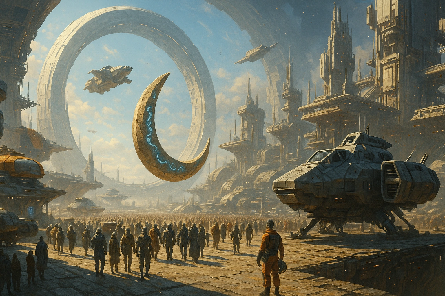 Найбільший космічний порт тисячолітьУ кожної епохи є своє серце руху. Колись це були придорожні заїзди караванних шляхів, потім — морські гавані, пізніше — аеропорти планетарних століть. Але для тих, хто живе в добу міжзоряних трас, таким серцем став він — найбільший космічний порт тисячоліть, жива легенда, про яку говорять у будь-якому барі, де є хоч одна зоряна карта на стіні. Його назву вимовляють по-різному: Еон-Порт, Вулик Тисяч Шляхів, Вузол Галактик. Офіційні реєстри вперто тримаються за сухе «Конфлюенція-01», проте ніхто з тих, хто бодай раз стикався з його доками, так не каже. Для них це просто — Порт. Той самий, понад часом, понад імперіями. Пролог: точка, де зустрічаються всі траєкторіїЯкщо подивитися на карту відомого космосу з достатньо великої висоти абстракції, вона раптом починає нагадувати живу мережу — вени, якими циркулюють кораблі, вантажі, дані, емоції. І майже всі ці вени рано чи пізно звужуються в одну точку, ніби Всесвіт дихає через цей єдиний клапан. Саме тут сходяться головні надсвітлові коридори кількох спіральних рукавів. Саме тут колись було зведено перші станції-доки, потім до них приростали нові кільця, платформні яруси, штучні астероїдні пояси. За тисячоліття Порт розрісся до таких масштабів, що його гравітаційну тінь враховують у всіх серйозних навігаційних розрахунках. Для пілота, який уперше входить у цю систему, це завжди схоже на диво. Спершу — темрява. Потім — хаотичні відблиски маяків. А потім датчики раптом розкривають перед тобою гігантську багатошарову структуру, що оперізує цілу зірку, додає до неї власні кільця й платформи та, здається, сама визначає ритм локального простору. Геометрія порту, якого не мало б існуватиКонфлюенція-01 не схожа ні на класичні орбітальні міста, ні на кільцеві станції давніх імперій. Її архітектура — результат тисячоліть нашарувань, реконструкцій, часткових руйнувань і відбудов. Умовно Порт поділяють на три головні пояси: