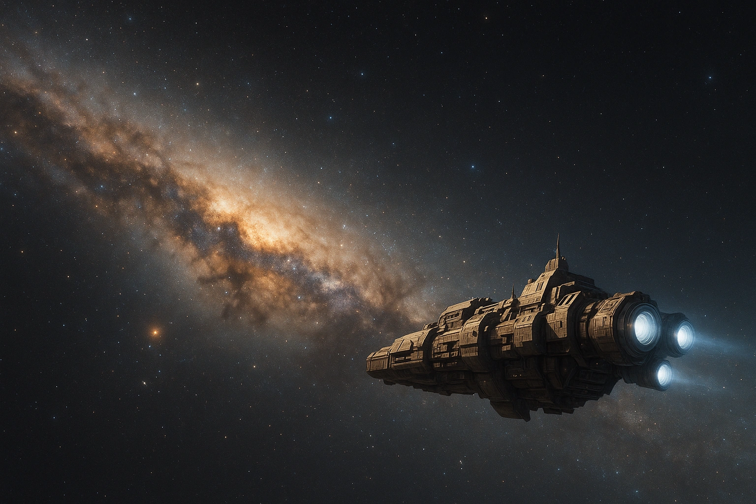 Перший корабель за межами ГалактикиВ усіх легендах Хронік першопрохідців є одна дата, яку різні цивілізації позначають по-різному, але пам’ятають однаково: день, коли перший створений розумом корабель перетнув невидиму межу й покинув рідну Галактику. До цього люди, інші раси й навіть штучні інтелекти жили в уявному «всесвіті в межах одного зоряного дому». За туманними рукавами, кулястими скупченнями й темними проваллями простору починалося щось на кшталт міфу. У той день міф розчинився у шумі двигунів. Історія Всесвіту вперше побачила корабель, що пішов туди, де карти закінчувалися, а зірки рідшали, як думки перед сном. Галактика як дім, що став тіснимЩоб зрозуміти, чому ця подія стала переломною, треба згадати, ким були ті, хто її здійснив. До моменту запуску Першого позагалактичного корабля цивілізації вже встигли зробити майже все, про що мріяли їхні пращури. Вони приборкали ядра зірок, навчилися згинати простір на субгалактичних відстанях, створили кібернетичні світи й космоінтелекти, які мислили в масштабі рукавів. Кораблі курсували між центром і окраїнами, космічні ліфти з’єднували планети з орбітальними містами, а туманності стали не загадкою, а ресурсом і лабораторією. І все ж, на кожній карті, в кожному атласі, на кожному екрані навігаційного мостика лишалося щось спільне: тонка межа, яка позначалася просто — «край Галактики». Далі починалася сіра пустка, периферія, де щільність зірок падала, а туманні хмари поступалися місцем майже чистій темряві. Спершу ця межа видавалася суто технічною: «тут наші двигуни ще працюють ефективно, а далі — надто дорого, надто довго, надто небезпечно». Але з часом техніка наздогнала мрії. Залишилося не «надто важко», а «надто страшно». Бо покинути Галактику означало визнати, що вона — не весь Всесвіт. А значить, усе, що вважалося центральним, раптом ставало локальним епізодом. Першими це відчули не політики й не військові, а ті самі, хто в усі епохи штовхає історію в невідомість: дослідники, божевільні романтики й тихі математичні фанатики. Проєкт «Перелом Орбіти»: народження неможливого корабляПерший позагалактичний корабель не з’явився раптово. Його витесали з мільйонів суперечок, провальних прототипів і амбітних декларацій, які довго ніхто не сприймав серйозно. Офіційно проєкт називали «Перелом Орбіти». У неофіційних колах — «Корабель, що не повернеться». Це звучало не як прокляття, а як прийнята наперед жертва: ніхто не обіцяв екіпажу дорогу назад. Надто багато невідомих, надто великі масштаби. Це був скоріше кидок свідомості у темряву, ніж звичайна експедиція. Корабель мав бути: