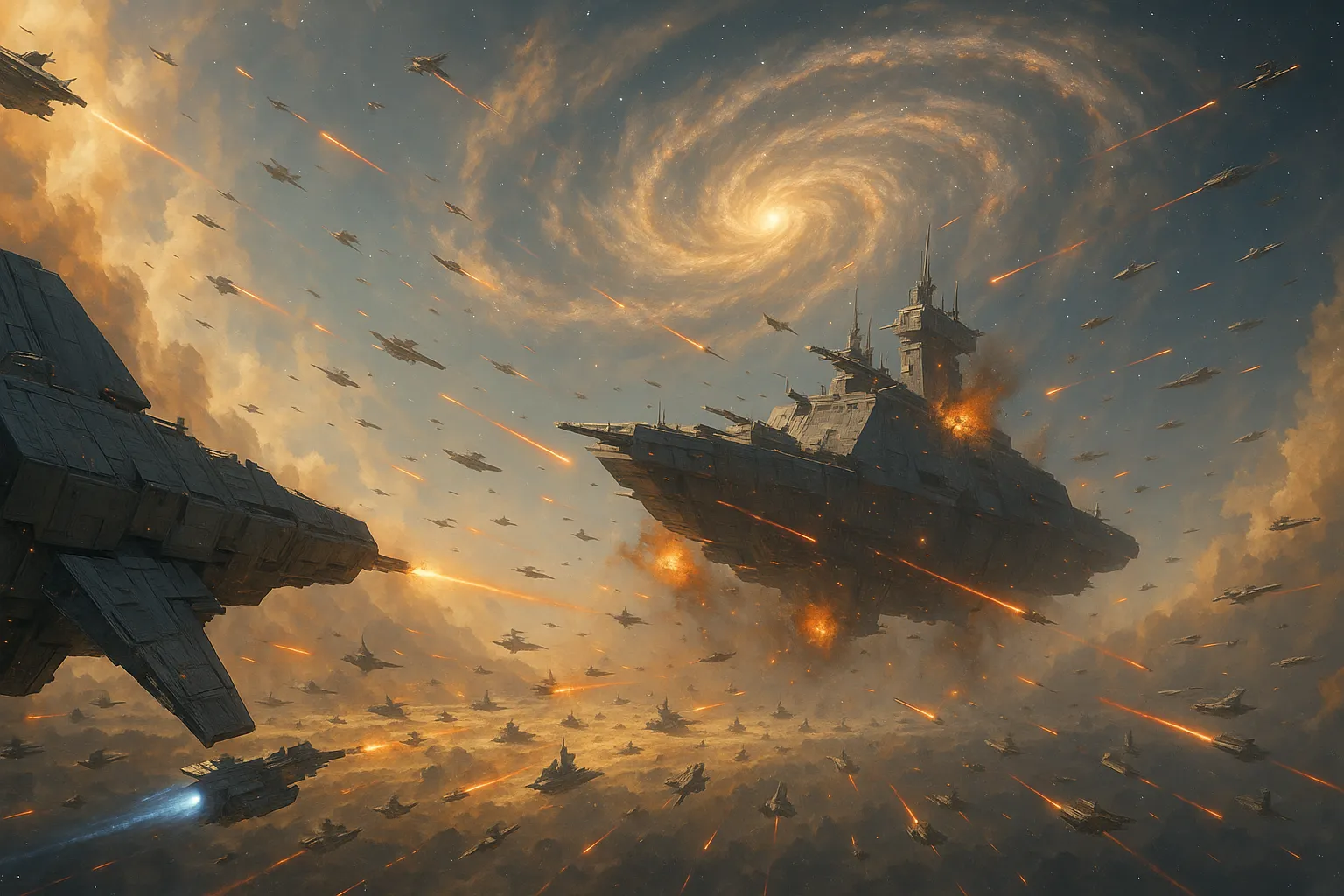 Тисячолітній конфлікт СпіраліПролог: війна, що стала формою орбітиУ далекій Спіральній Галактиці, яку в «Хроніках Забутих Галактик» зазвичай називають просто Спіраллю, війна одного дня перестала бути подією. Вона стала середовищем. Спочатку це був прикордонний конфлікт між двома цивілізаціями, які навіть не вважали одна одну серйозною загрозою. Один рукав Спіралі контролювала зоряна ліга Аркіонів — раціональна, законно-орієнтована цивілізація, що будувала свою владу на союзах, договорах і мережі фортифікованих систем. Інший рукав належав Кластерам Вільних Роїв — фрактальній спільноті змінних роєвих інтелектів, для яких будь-який кордон був лише тимчасовим шумом у полі. Їхній перший зіткнення мало закінчитися швидкою кампанією. Але замість короткої війни Спіраль отримала тисячолітній конфлікт, що переписав карти, доктрини, культури й навіть саме розуміння того, що таке перемога. Це була війна, яку ніхто до кінця не виграв. І саме тому вона увійшла у Хроніки. Причини, що здавалися дрібницямиПочалося все банально. Аркіони побудували ланцюг гравітаційних фортець на околиці свого рукава — мережу станцій, здатних керувати потоками міжзоряних маршрутів, змінювати кривину простору й «оподатковувати» всі кораблі, що пролітали через стратегічні вузли. Це була не агресія, а «економічна стабілізація». Так говорив Рада Розумних Орбіт — центральний орган влади Аркіонської Ліги. Вільні Рої побачили в цьому інше: спробу зафіксувати те, що за своєю природою повинно залишатися текучим. Їхні роєві флоти жили з торгівлі, хаотичних маршрутів, швидких рейдів і гнучких обмінів інформацією. Гравітаційні фортеці обмежували їх не тільки фізично, а й концептуально. Перші сутички були незначними. Одне невизнане вторгнення, один знищений конвой, один несподіваний удар по форпосту на периферії. В архівах того часу залишилися сухі записи: «локальний інцидент», «ескалація низького рівня», «тимчасове порушення статус-кво». Уже тоді ніхто не помічав головного: Спіраль почала ділитися не тільки на території, а й на способи мислення. Там, де Аркіони бачили структуру, Рої бачили кайдани. Там, де Рої бачили свободу, Аркіони бачили хаос. Стратегія рукавів: як війна розтягнулася на тисячоліттяКоли конфлікт перейшов із розряду «локальних» у розряд «системних», стало очевидно: швидкого завершення не буде. Аркіони мали перевагу в оборонних технологіях і логістиці. Їхні фортеці були вузлами стійкої сили: гравітаційні решітки, мінні поля, мережі сенсорів, які бачили все, що наближалося на відстань тисяч світлових років. Вони мислили у вісях: лінії фронтів, глибина оборони, резервні флотилії. Рої натомість були майстрами розпаду й збирання. Їхні кораблі змінювали конфігурацію, як живі організми. Флот з тисяч одиниць міг за кілька діб розірватися на мільйони мікроструктур, розчинитися у міжзоряному пилу, а потім раптово зібратися в іншому секторі, де не чекали нічого, крім фонових шумих сигналів. Зіткнення цих двох доктрин породило те, що пізніше назвали «статичною динамічною війною». Аркіони створювали стіни. Замість тотального наступу — нескінченні кампанії. Замість генеральних битв — розтягнуті серії рейдів, диверсій, локальних проривів, які ніколи не перетворювалися на остаточний удар. Спіраль поступово перетворювалася на військову шахівницю, де к