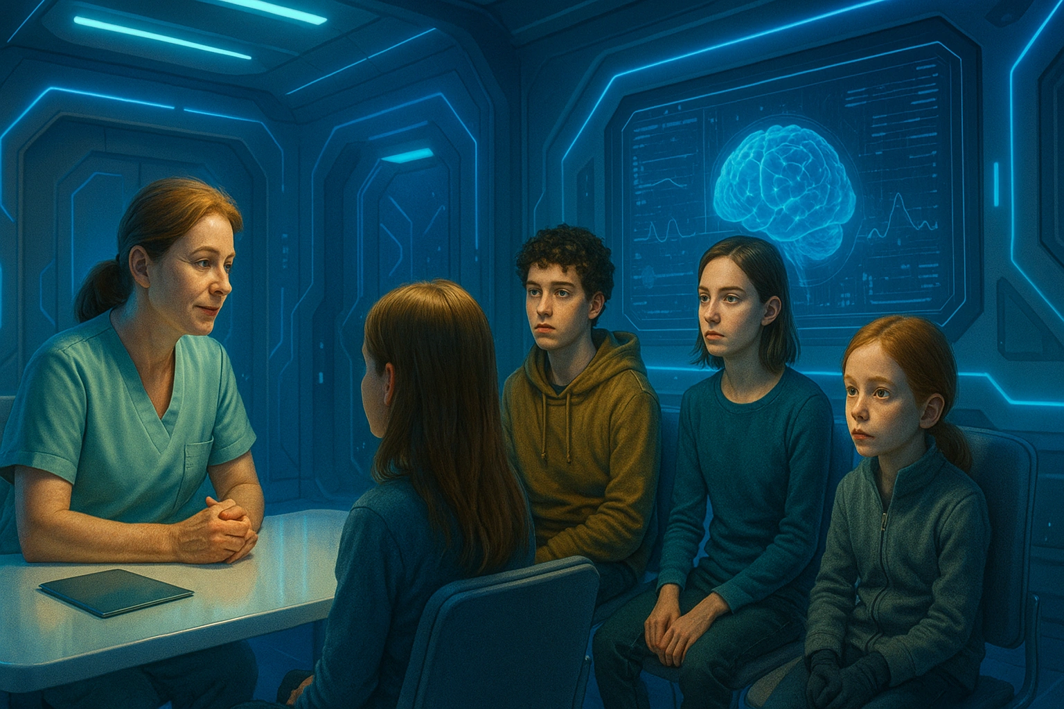 Народжені на стиках галактик - частина IIТі, хто чує тріщиниМедичний модуль завжди пах однаково: стерильністю, металом і ледь вловимою нотою втоми. Так пахли місця, де люди намагалися виправити те, що Всесвіт робив на свій розсуд. Ліра стояла в коридорі, де підлога світилася бляклим білим світлом, і чекала, поки загориться її номер на панелі виклику. Орен, всупереч здоровому глузду, пішов із нею й тепер нервово розглядав стелю, ніби там могли бути цікавіші відповіді, ніж у лікарів. — Тобі ж не обов’язково бути тут, — сказала Ліра. Слово «ненадовго» на Вузлі давно перетворилося на жарт без сміху. На стіні похапцем виводився текст: