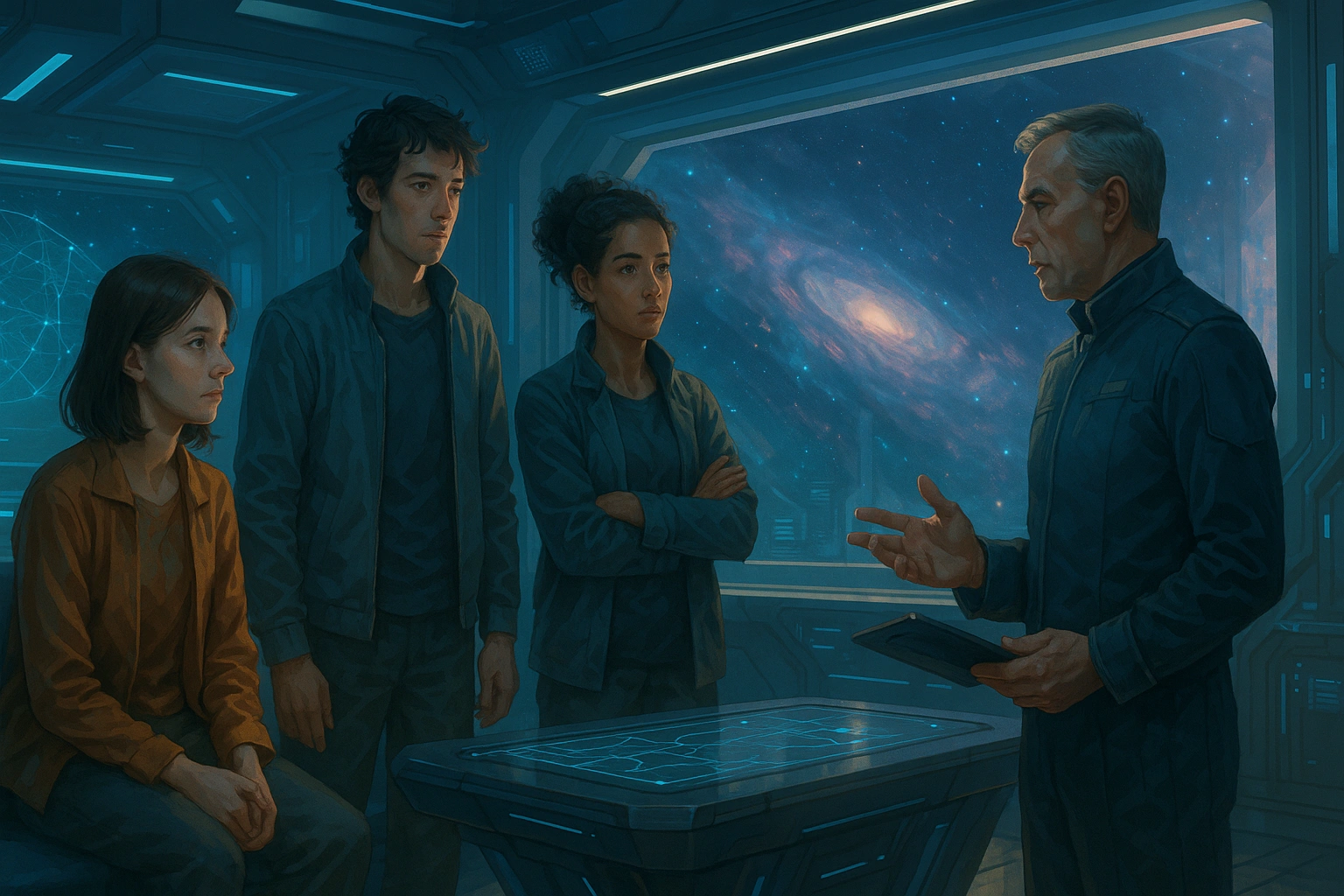 Це «післяударна» звучало майже смішно. Якби можна було однією стрічкою описати те, що вони щойно пережили. — У нас нові, — прошепотіла вона, коли в спільній кімнаті зібралися Орен й Наїра. — Двоє приєдналися під час удару. З периферії. — Цікаво, — хрипко відізвався Орен, — вони сприймуть нас як рятувальників чи як тих, хто притягнув до них біль? — Думаю, поки що вони просто раді, що не згоріли в поодинці, — відповіла Наїра. Її шкіра досі відгукувалася тонкими геометричними візерунками — тьмяні лінії то з’являлися, то зникали, ніби шов ще не вирішив, чи варто цю карту тримати на поверхні. Д-р Сів прийшла лише в другій половині станційного дня. Виглядала так, ніби її використали замість стабілізатора: бліда, з темними колами під очима, але з тими самими різкими рухами людини, яка поки що дозволяє собі не падати. — Ви живі, — констатувала вона, переступаючи поріг. — Це вже більше, ніж очікували деякі. — Дехто тут явно робив розрахунок без нашого хору, — сказав Орен. — Як реакція верхів? — Змішана, — втомлено всміхнулася Сів. — Офіційно — ми «успішно відвернули критичний розрив на периферії». Неофіційно — паніка. Перший раз за всі роки мережа відповіла не так, як її програмували. Вона подивилася на Ліру: — Я думала, вони назвуть це «несанкціонованою колективною активністю аномалій», — сухо сказала Наїра. — Так і назвуть, — кивнула д-р Сів. — Але доведеться враховувати. Архів А-0 зафіксував ваш хор як окремий параметр. І, що ще важливіше, система стабілізації швів змушена визнати: ваш «втручальний шум» знизив пікове навантаження на 47-β. — Тобто ми офіційно стали фактором стабільності, — задумливо промовив Орен. — Це ускладнює полювання. — Так, — сказала Сів. — Щоб відшити вас тепер, їм доведеться пояснити, чому вони позбавляються того, що щойно врятувало мережу від удару. Вона трохи помовчала й додала: — Кеел цього не пробачив. Інспектор Кеел з’явився того ж дня — не в секторі, в центральному модулі управління. Там, де сходилися всі офіційні потоки даних, крім одного — того, що народжувався в архіві А-0 й у головах дітей швів. Він стояв перед головною голограмою, де мережа швів сяяла багатовимірною конструкцією. Особливо яскраво світився сектор 47-β: навколо нього тепер був не один компенсаційний контур, а ціла мозаїка ліній. — Ви бачите? — говорив хтось із техніків. — Узагальнені графіки показують, що удар розподілився по сорока двох секторах. Пікові значення нижчі, ніж у прогнозі. Ніде не вийшло за критичний поріг. — Завдяки чому? — тихо спитав Кеел. Технік вагався. — Формально — завдяки раптовій кореляції сигналів шовних носіїв, — нарешті сказав він. — Ми фіксували їхню активність як шум, але… цього разу вона мала чітку структуру. Ритм. На екрані поряд з’явилася накладена поверх поля лінія — схематичний запис: «три — два — три». — Це ваш «хор», інспекторе, — втрутилася жінка з планшетом. — Та сама «несанкціонована синхронізація», яка… змусила мережу перерозподілити напругу. — Тобто, — повільно сказав Кеел, — без них ми мали б керований локальний удар. А з ними отримали керований розподілений. Він проковтнув слово «керований». Воно раптом здалося занадто сміливим. — І ви все ще вважаєте, що їх достатньо просто посадити в клітку? — запитав хтось із енергетиків. — Якщо наступного разу вони вирішать не співати, а… мовчати? В цьому питанні 