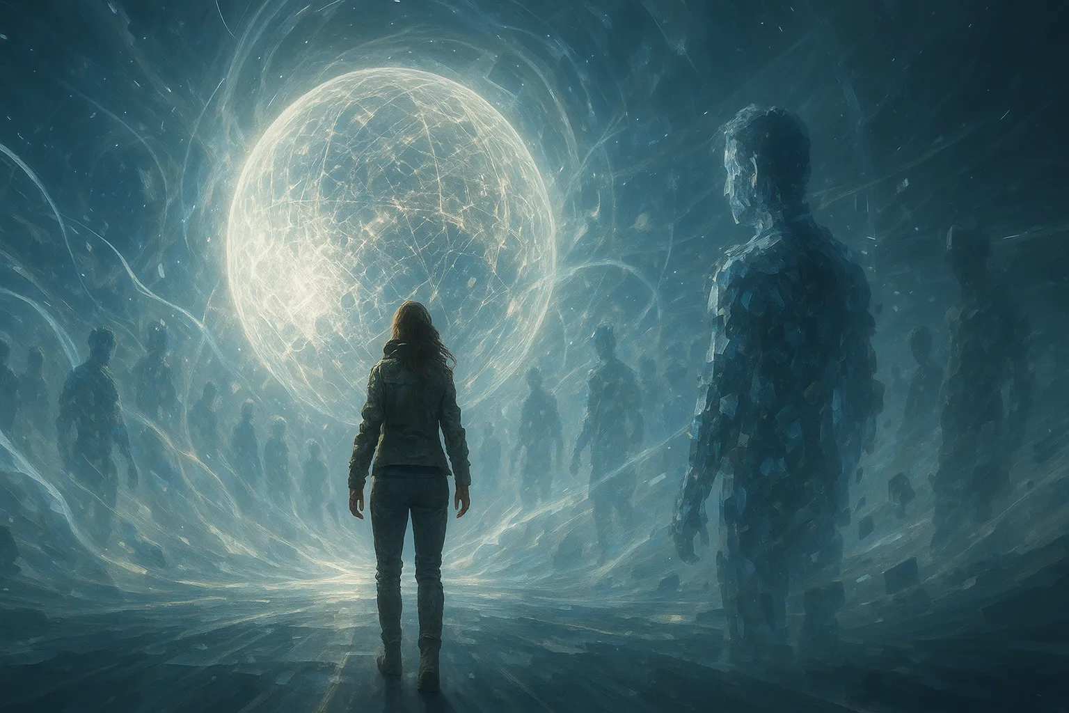 Живі уламки цивілізації - частина IVПадіння в Білі ГлибиниСвітло Серцевини не сліпило — воно розкривало. Прозорий простір навколо був не вакуумом і не кімнатою — він нагадував нескінченний білий океан, у якому інформація текла так, як вода у вирі. Пакети даних формували спіральні течії, а голографічні фігури зникали швидше, ніж вона встигала моргнути. — Ларо… Вона обернулася — і перед нею з’явився він. — Ілай… де я? Лара наблизилася до нього — але не відчула під ногами жодної опори. — Це світло… що це? Навколо них простір почав рухатися — не обертатися, а перетікати, переформатовуватися, утворюючи химерні структури, схожі на гігантські фрактальні вежі та тунелі. — Я можу впасти? — спитала вона. Він усміхнувся, але в усмішці було щось болюче. — Ларо, ZeroRay пробуджується. Голоси довкола посилилися — не шум, а тисячі нашарованих шепотів. Дані… Аналіз… Відповідність… Синтез… ZeroRay розглядав її. Ніби намагався зрозуміти. 1. Рей і станціяТим часом зовні Рей стояв на колінах перед закритою оболонкою Серцевини. — ЛАРО! ЧУЄШ МЕНЕ?! ЛАРО!!! Його голос губився в залізному гуле станції. ІКОН, під’єднаний до його шолома, говорив уривками: — Частота імпульсів підвищилася… реактор входить у режим самовизначення… небезпечно… Рей уперся руками в метал. — ВІДКРИЙСЯ! — Вона там сама! ТИ ЧУЄШ?! ВОНА ТАМ ОДНА! Станція не відреагувала. Натомість щось в іншій частині зали заворушилося. Кабелі. Ніби змії. Вони поповзли до нього дуже повільно. Рей підняв зброю. — Навіть не думайте. Кабелі завмерли — а потім почали формувати структуру. Рука зупинилася за метр від нього. Кінчики кабелів тремтіли — ніби хотіли торкнутися його обличчя. — Він аналізує тебе, — сказав ІКОН. — ZeroRay хоче зрозуміти, хто ти і що ти для Лари. — Я для неї — той, хто намагається її повернути! 2. Лара бачить ПравдуУ Серцевині світло раптово змінилося — стало глибоким, майже тіньовим. Перед Ларою відкрилося… небо. — Це… зоряне поле? У небі з’явилися сотні світних вузлів. — Це… схоже на мозок. Один із вузлів засвітився яскравіше. Дівчина. — Хто це? — Це… Селін. — Ілай говорив повільно. — Перша операційна інженерка ZeroRay. Перша, чия нервова система була з’єднана з машиною. Мережа спалахнула. Всі — частини станції. — Ларо… — Ілай провів рукою по мережі. — ZeroRay — не просто реактор. — Це небезпечно. Лара дивилася на мережу — і раптом помітила один вузол, який світився яскравіше за інші. — Це ти? Вона потягнулася рукою — але Ілай відступив. — Не торкайся. Лара зупинилася. — Тоді чому мене сюди привели? Усе всередині завмерло. — Що? Вона відступила. — Ти жартуєш. Голос Ілая тремтів. — Я цього не дозволю, — сказала Лара. Лара закрила очі. — Чому все зводиться до того, що я мушу втрачати тебе ще раз? Ілай не відповів. 3. Вибір починає стискатисяПростір Серцевини раптом почав стискатися. — Ларо… ZeroRay входить у режим автоселекції, — попередив ІКОН. — Він обирає, кого зберегти, а кого відкинути. — І що він робить зі мною? Лара різко потягнулася до нього — але простір між ними почав тріскати, ніби скло. — ІЛАЙ! Раптово Серцевина зупинилася. Мов хтось натиснув паузу. Перед Ларою з’явився новий об’єкт — руна, голограма, символ. — Що це? — Який? Глибоке мовчання розірвалося ззовні — голос Рея, слабкий, приглушений шаром реакторного металу: — ЛАРО! НЕ ДАРУЙ ЙОМУ СЕБЕ! ПОВЕРНИСЯ! Лара стояла між двома виборами. 