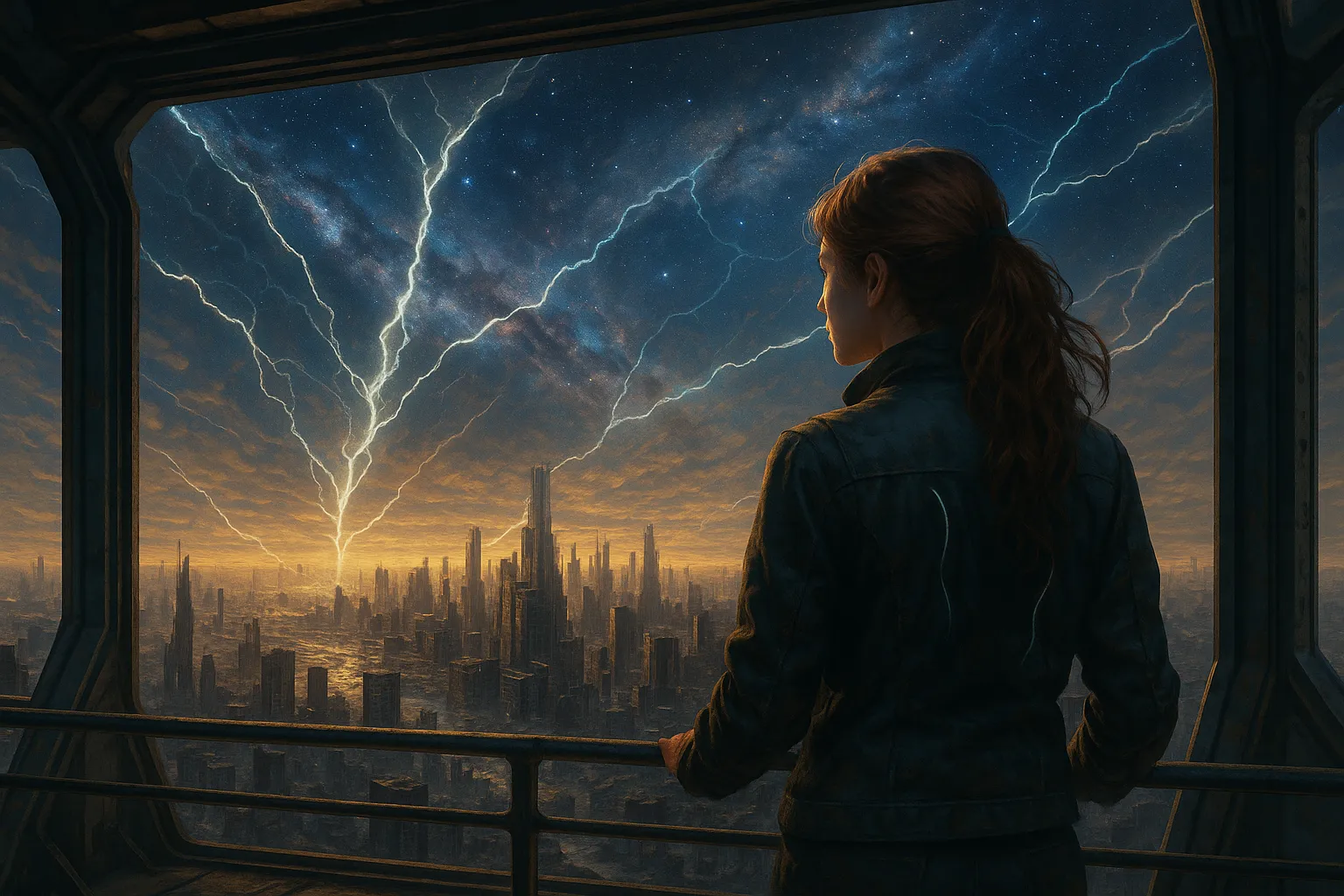 Живі уламки цивілізації - частина XМісто, яке вмирало двічіПланета виглядала спокійною. Трохи завеликий океан, кілька материків, пара світлих хмарових поясів, звичайна жовта зірка. — На вигляд — курорт, — оцінив Рей, витягуючись у кріслі й позіхаючи. — Сподіваюсь, у «міста-примари» хоча б є нормальна кухня. Я вже звик, що всесвіт на межі колапсу, але чому завжди при цьому голодний? — Бо ти нервуєш не через космос, а через себе, — машинально відрізав Ілай, перегортаючи шари даних. Перед ним висіла карта — не географічна, а структурна. На ній місто було не точкою, не плямою.